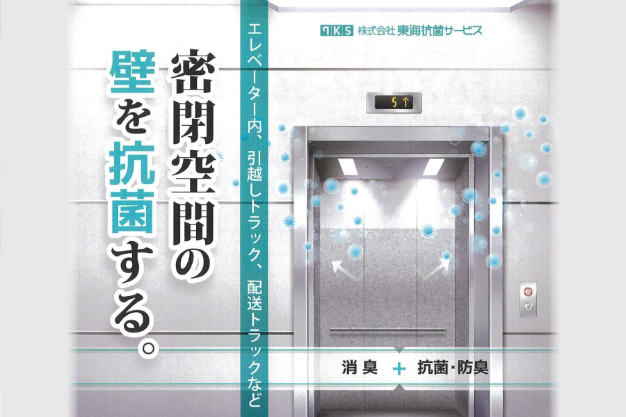 「消臭+抗菌・防臭」。エレベーター内、引越し・配送トラックなど、密閉空間の壁を抗菌する。